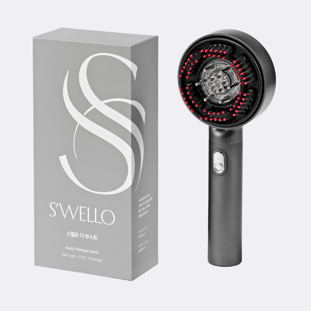 [스웰로] 더 부스트 두피 마사지기 LED 적색광 EMS 전동 탈모예방 빗 탈모 앰플 포함